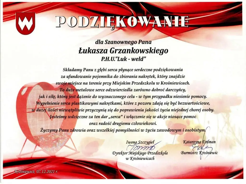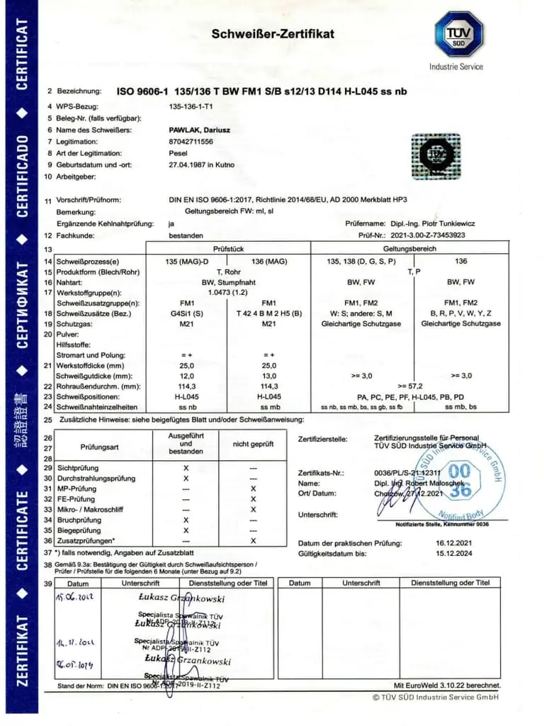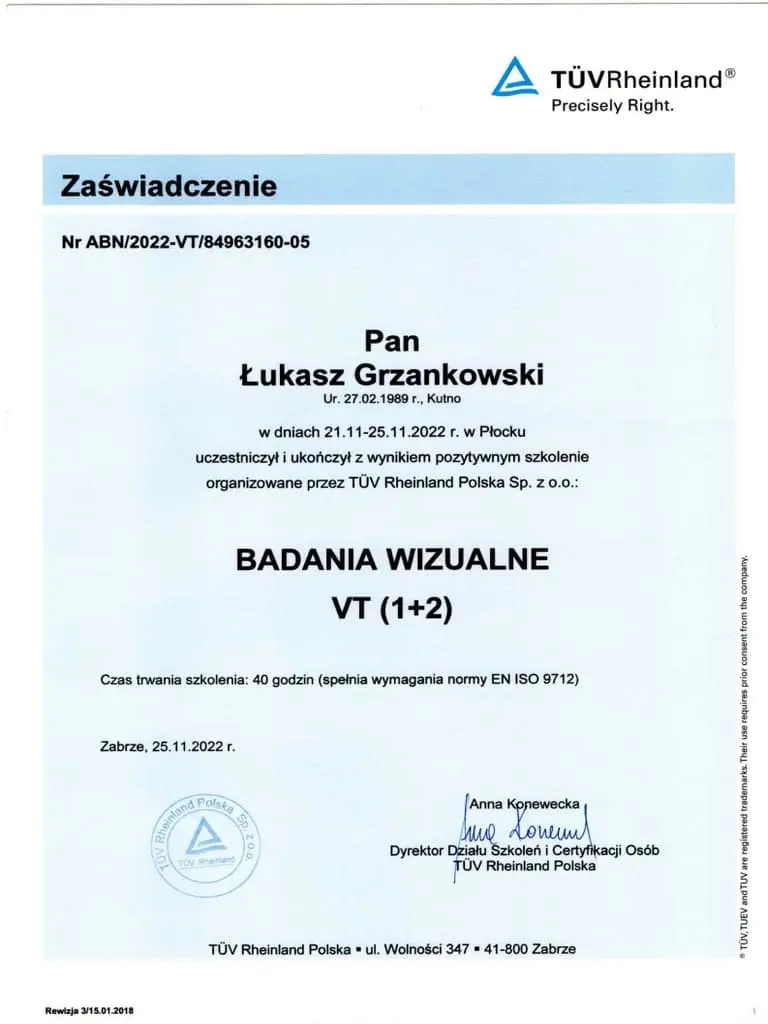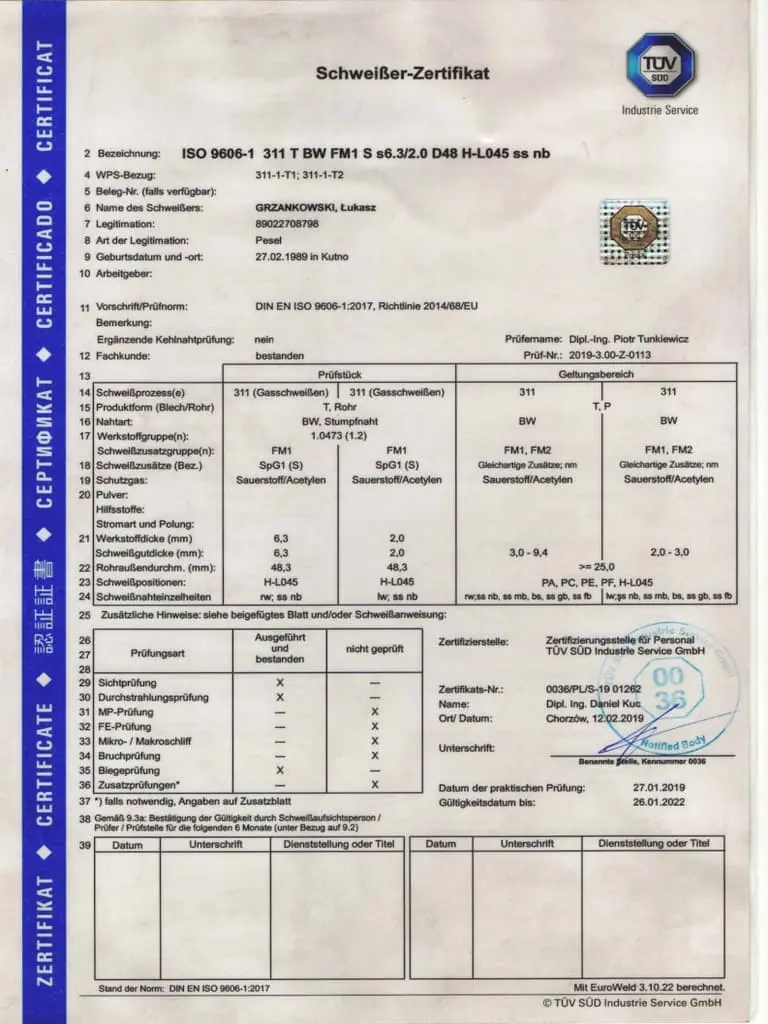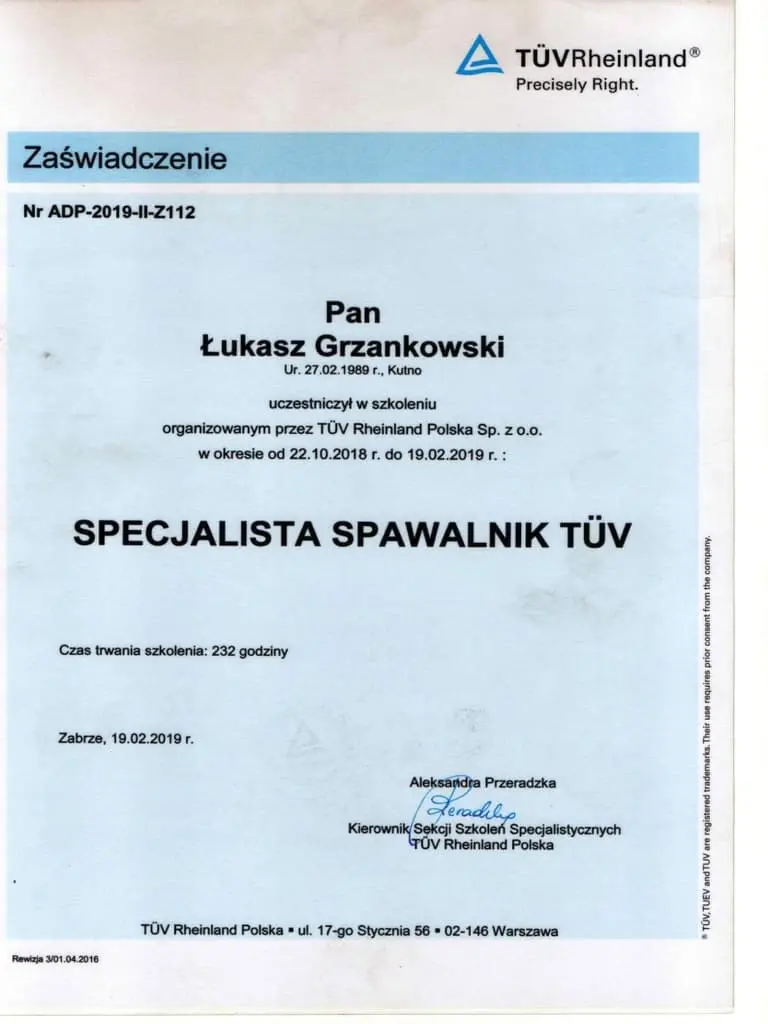 Jesteśmy dumni, mogąc przedstawić Państwu nasze certyfikaty, które potwierdzają naszą zaangażowaną pracę, wysoką jakość oraz ciągłe dążenie do doskonalenia naszych produktów i usług. Firma Luk-Weld od lat działa w branży obróbki metalu, zdobywając zaufanie naszych klientów i partnerów biznesowych. Nasze certyfikaty są nie tylko dowodem naszego zaangażowania, ale także potwierdzeniem, że spełniamy najwyższe normy branżowe.