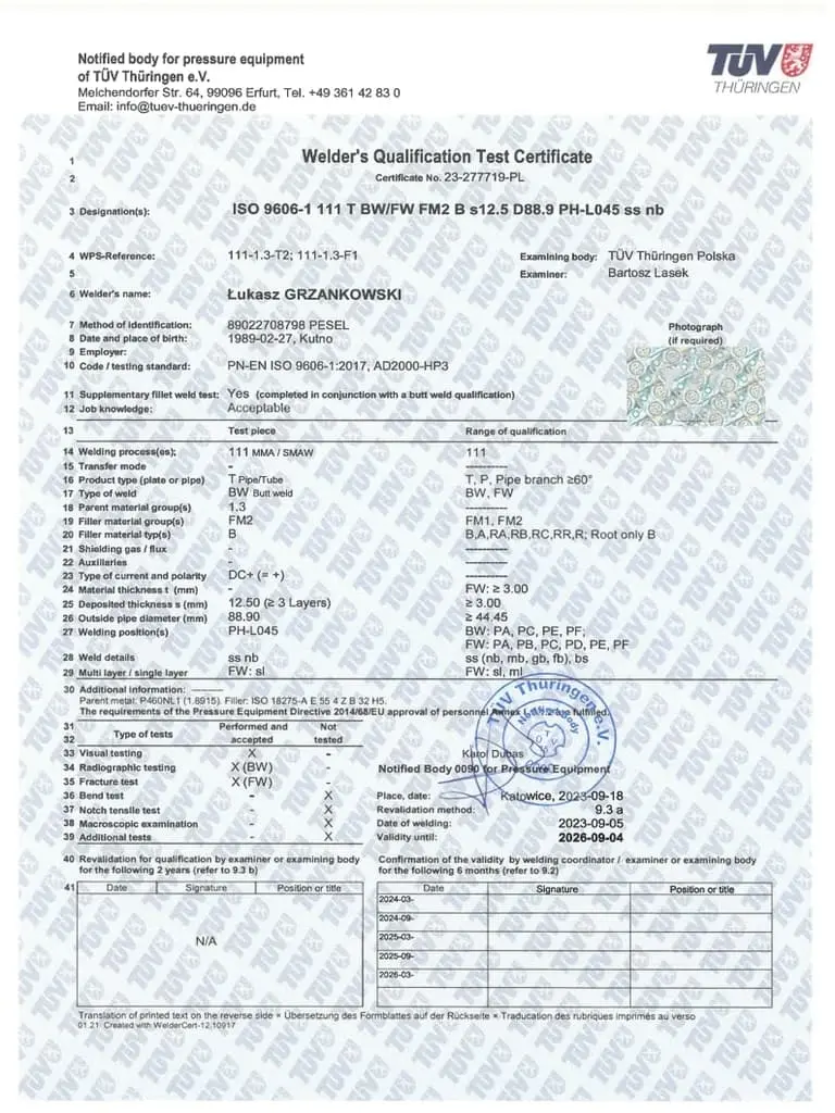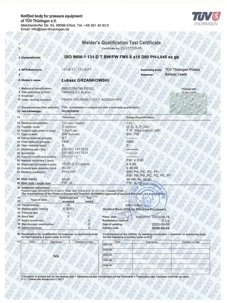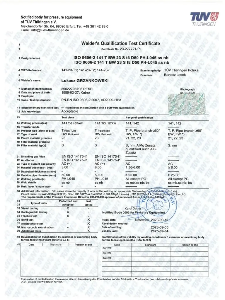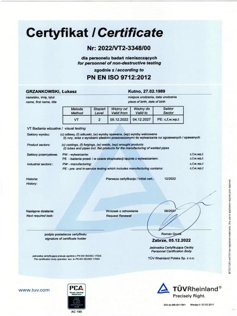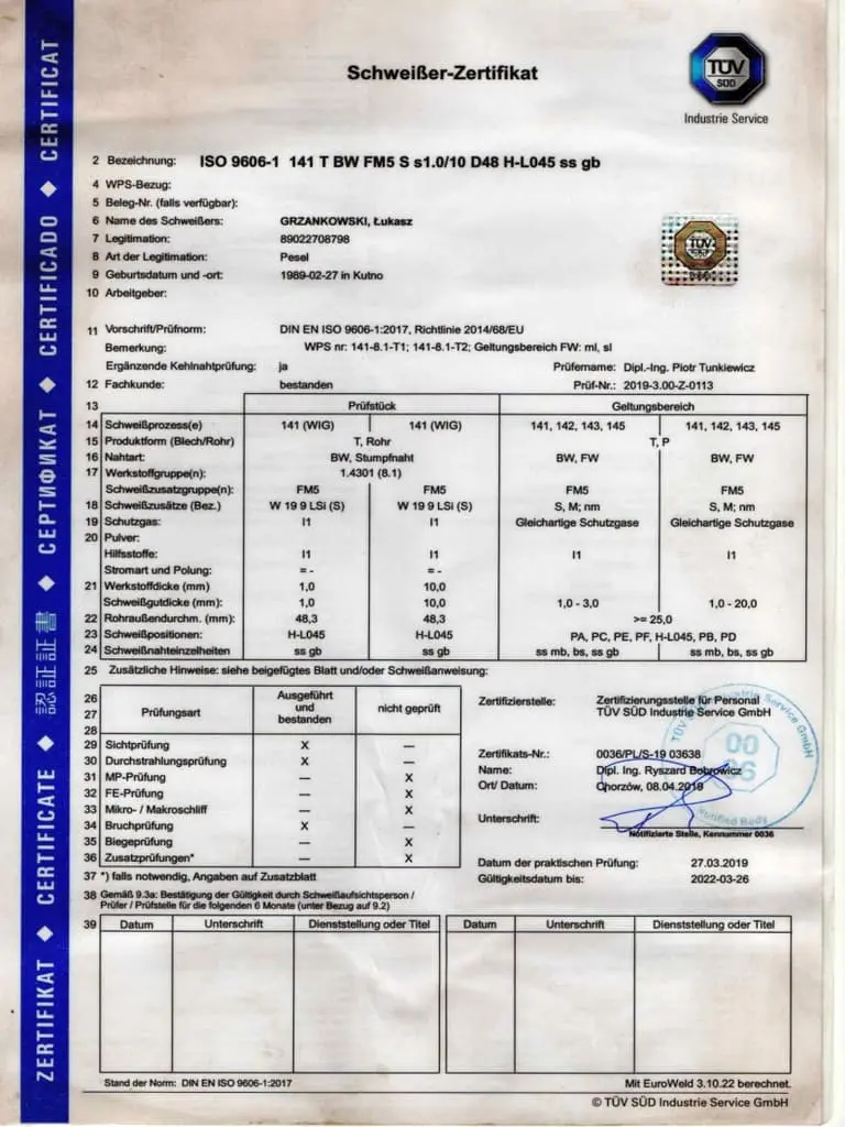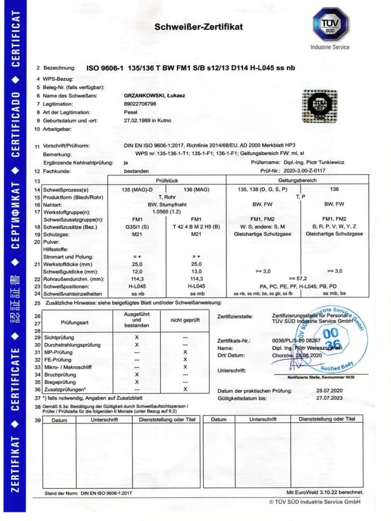 Jesteśmy dumni, mogąc przedstawić Państwu nasze certyfikaty, które potwierdzają naszą zaangażowaną pracę, wysoką jakość oraz ciągłe dążenie do doskonalenia naszych produktów i usług. Firma Luk-Weld od lat działa w branży obróbki metalu, zdobywając zaufanie naszych klientów i partnerów biznesowych. Nasze certyfikaty są nie tylko dowodem naszego zaangażowania, ale także potwierdzeniem, że spełniamy najwyższe normy branżowe.